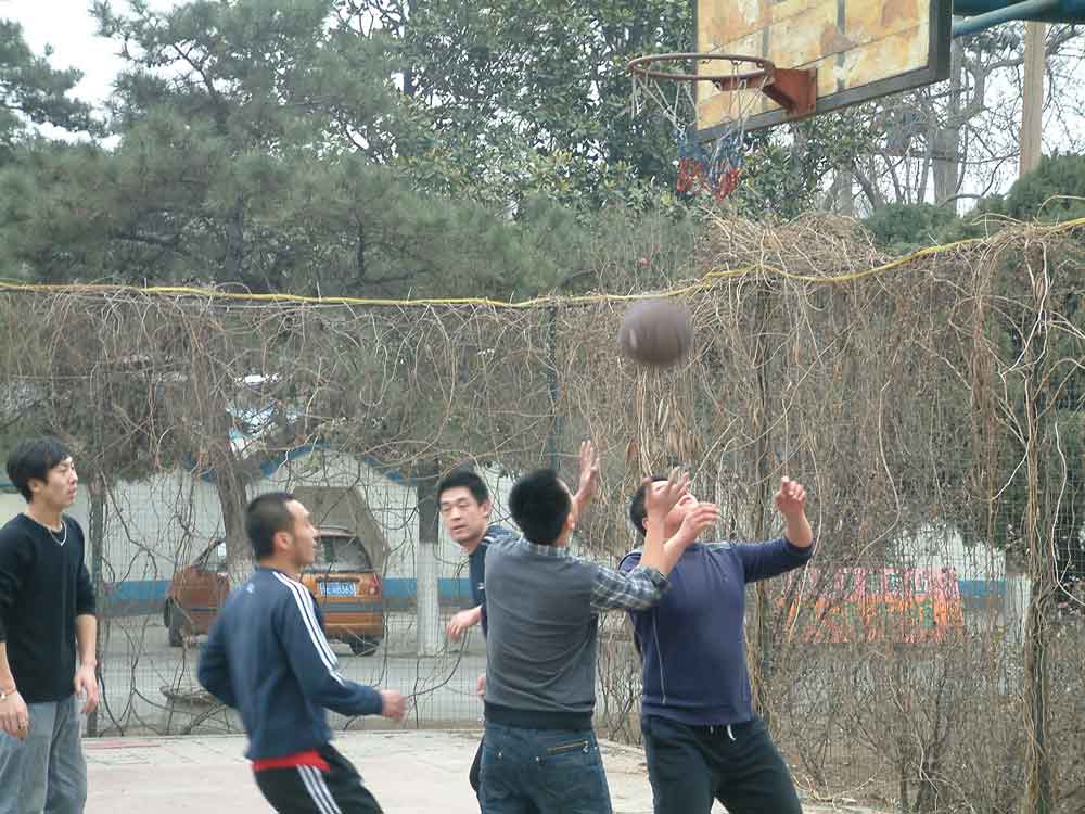2011年2月26日,安阳仍然冬意浓浓。上午9点,海创商贸公司旁边的篮球场内,人头攒动,看看场上的男同胞们个个都是单衣单裤,原来这里正进行着一场激烈的比赛——2011年中嘉业投资有限公司总部对铁西分公司的热身赛。