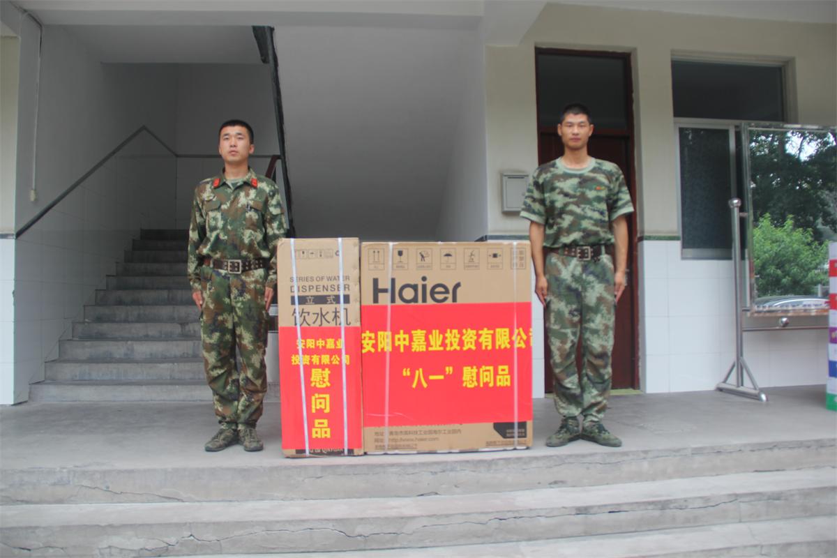 今年是中国人民抗日战争暨世界反法西斯战争胜利70周年,在“八一”建军节当天,受公司董事长付刚委托,杨总专程走访慰问武警河南省总队安阳市支队一中队,代表全体员工向武警部队官兵致以节日的问候和崇高的敬意,感谢他们为安阳经济社会发展和警民建设作出的积极贡献,并送去洗衣机、饮水机等慰问品。双方表示进一步加强军企合作和文化交流,不断加强军民共建,共同促进军地双方“融合式发展”。