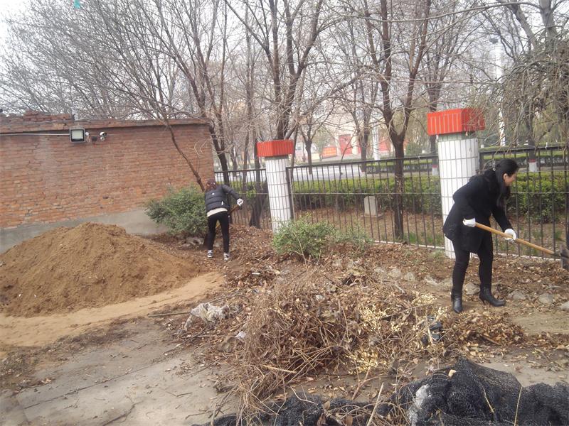 绿化方面扩大管理区域,厂区内所有绿化、树木、花草纳入管理范围,组织员工义务劳动,清理倒伏树木,打通杂草覆盖的道路,修剪树枝、清除杂草,清理绿化带内大量的建筑垃圾;组织员工植树节植树,补种果树、观赏树36棵;