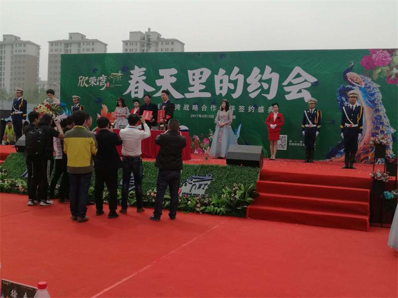 2017年4月15日欣荣湾与深圳市花样年国际物业、奥的斯电梯、辽宁盼盼新风科技 、亚萨合莱盼盼门业、德施曼机电、广东坚朗五金制品等战略合作伙伴集体签约仪式在项目工地顺利举行。