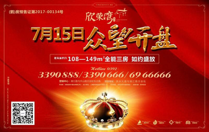 公司在鹤壁投资建设的欣荣湾房地产项目,于7月15日众望开盘!建筑面积约108-149㎡全能三房,如约盛放!【(鹤)房预售证第2017-000134号】