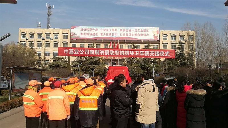 2018年12月29日上午10:00,河南安阳市殷都区铜冶镇人民政府大院内一辆披着大红花的崭新清扫车格外引人注目。原来是由安阳中嘉业集团公司慷慨解囊捐赠铜冶镇政府一辆环卫清扫车的捐赠仪式正在举行。