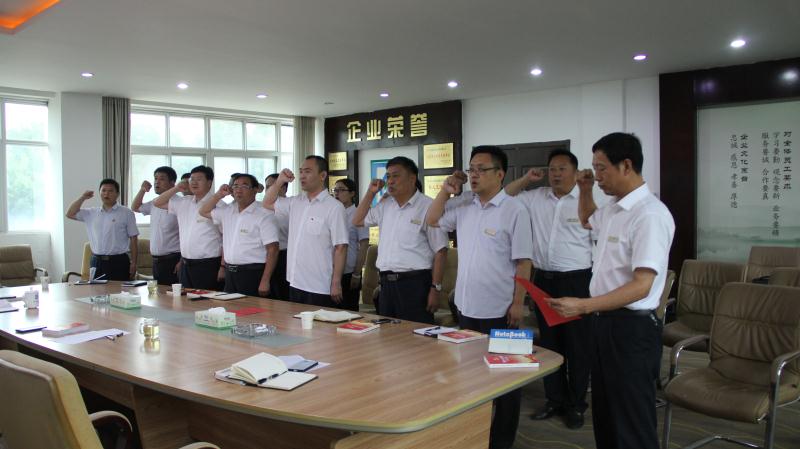 会议第一项由魏总带领全体党员重温入党誓词,第二项由企管部李部长带领全体党员一起学习“十九大报告”有关章节,会议最后付刚董事长做了讲话。