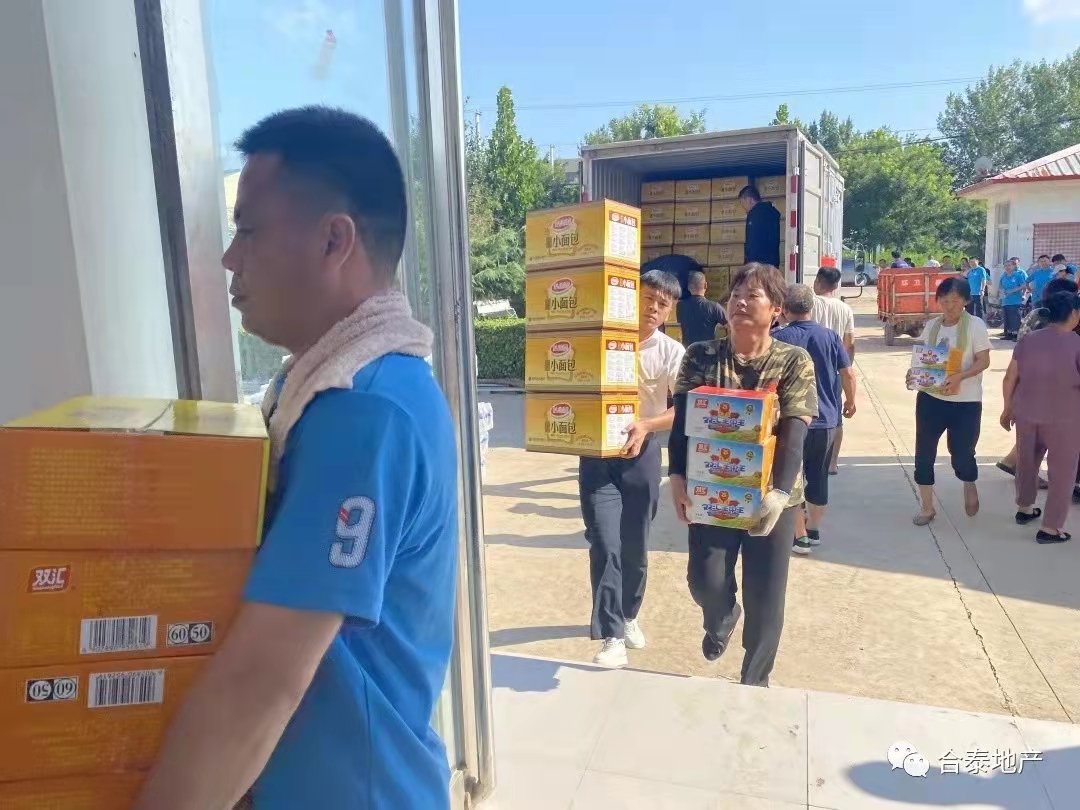 向新乡卫辉市安都乡重灾区捐赠食品、药品、胶鞋、衣被、头灯等救灾应急物资,慰问灾民。洪水无情人有情,一方有难八方支援!中嘉业集团及合泰地产慰问受灾群众,努力践行企业社会责任,体现社会担当,众志成城,守望相助。