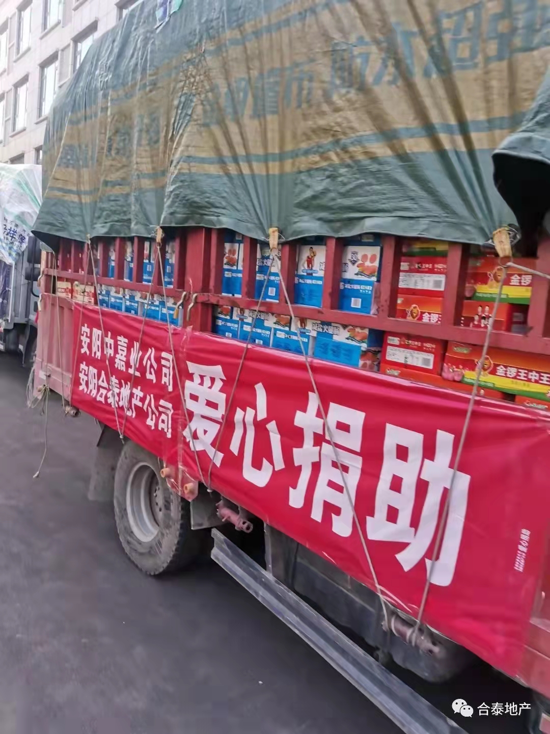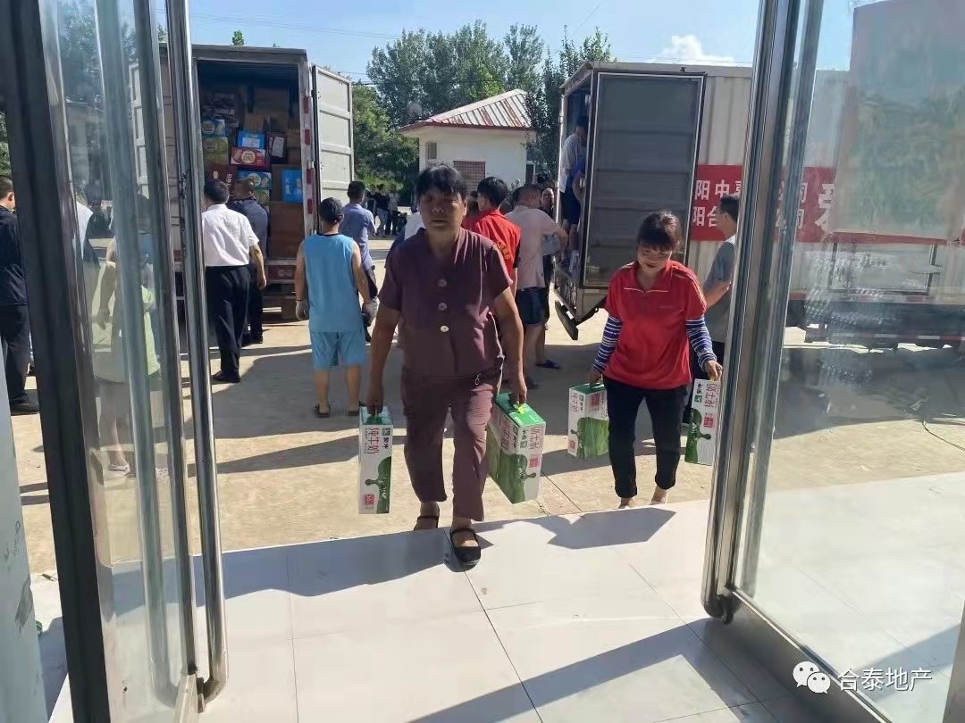 7月24日、25日,在继23日第一时间向郑州市红十字会、安阳慈善总会共计捐款400万元,用于防汛救灾之后,省人大代表、安阳中嘉业集团公司董事长、党支部书记、安阳合泰地产有限公司董事长付刚又带队分别向受灾严重的安阳县崔家桥镇、安阳县高庄镇及新乡卫辉市安都乡重灾区捐赠了食品、药品、胶鞋、衣被、头灯等价值近八十万元救灾应急物资,以实际行动为防汛抗洪贡献自己的一份力量。