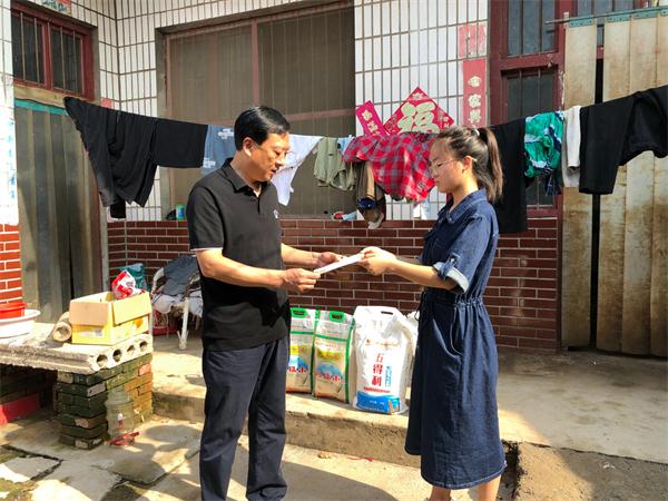 “被哪所学校录取了?现在生活上有什么困难?”9月3日,鹤壁中嘉业房地产有限公司(安阳合泰地产有限公司子公司)总经理李继玉先后到浚县新镇镇大蒋村、耿湾村看望了今年接受资助的两名大学新生,并给他们送去了米、面、油慰问品。